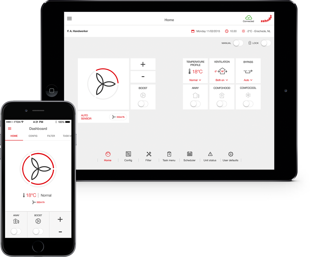 Zehnder ComfoClime 36 not only prevents overheating in residential buildings but provides additional heat in winter. Zehnder ComfoClime 36 is combined with Zehnder ComfoAir Q450 or Q600 complementing its features to provide a comfortable and healthy indoor climate in an energy-efficient way. The system exhausts warm, humid, stale air while enabling fresh, well-tempered, filtered outdoor air to enter the house. This increases our focus, performance, and quality of sleep to put us in a better mood and full of energy.