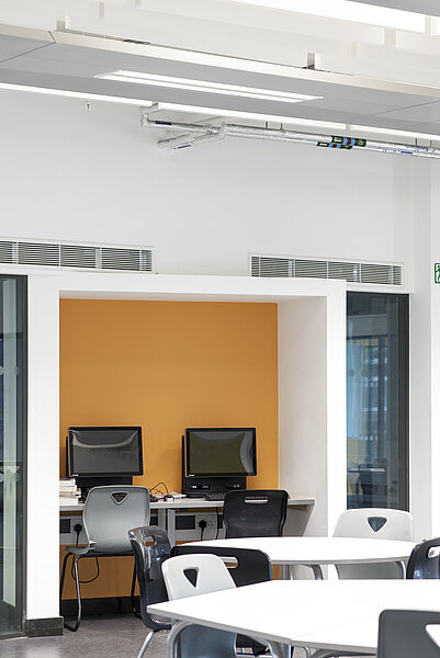 Constructed by the Leadbitter Group and built to achieve BREEAM Excellent rating, the academies are the latest schools in the UK to benefit from the installation of the revolutionary Multi-service foil. A joint venture between Zehnder and Whitecroft Lighting, the Multi-service foil brings together the expertise of both companies to provide a multi-functional ceiling raft which enables all the essential classroom services to be delivered from one single unit.